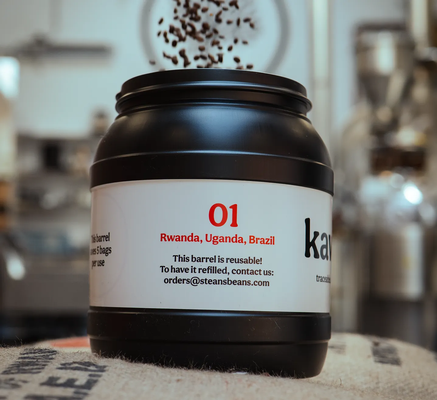 For orders in Amsterdam and Utrecht, you can opt for your coffee to be delivered in a re-usable barrel at checkout. We use our cargo bike or electric van for deliveries to cut down on emissions. Our coffee barrels ensure fresh, quality storage. When your coffee is running low, get in touch and we’ll have it refilled.
